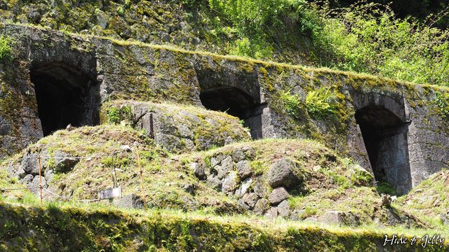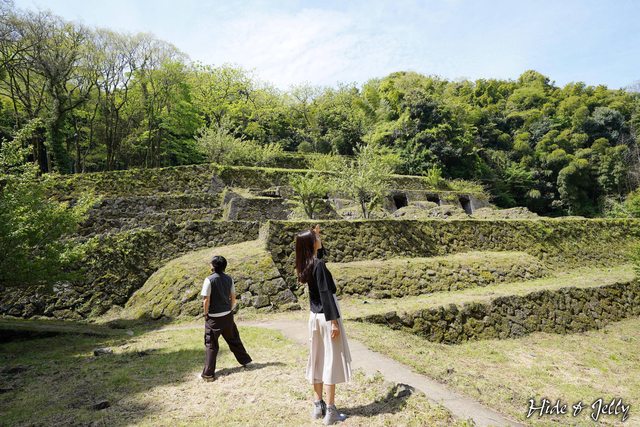 往內走沒多遠,就可以看到長著青苔相當翠綠的多段石垣,這裡就是石見銀山常出現在雜