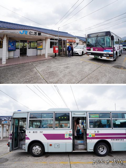 木造的仁万駅也蠻有味道的,列車抵達後,一出站就可以看到正在等待發車的巴士,難得