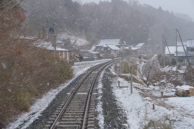 這天剛好路程中下雪了,雪中的列車很漂亮 列車會中途停靠好幾站,中間可以在送的集章本蓋章,可惜忘了蓋 QQ