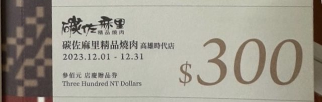 送一張碳佐麻里夢時代店300元禮券,
