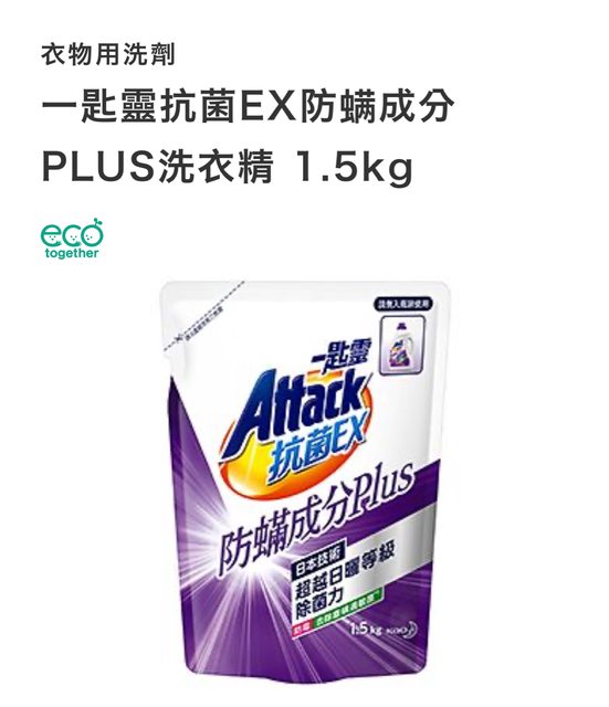 欲換物品:一匙靈抗菌EX防螨成分PLUS洗衣精 1.5kg(補充包)/ 1包