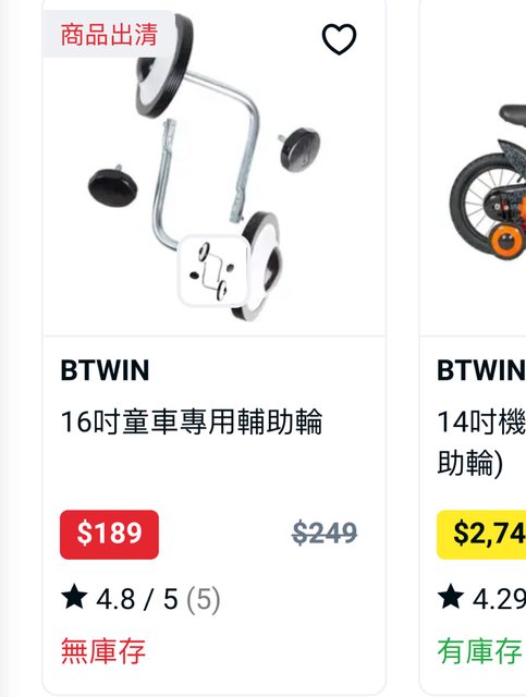 標題[贈送] 迪卡儂輔助輪(僅用於16吋童車)