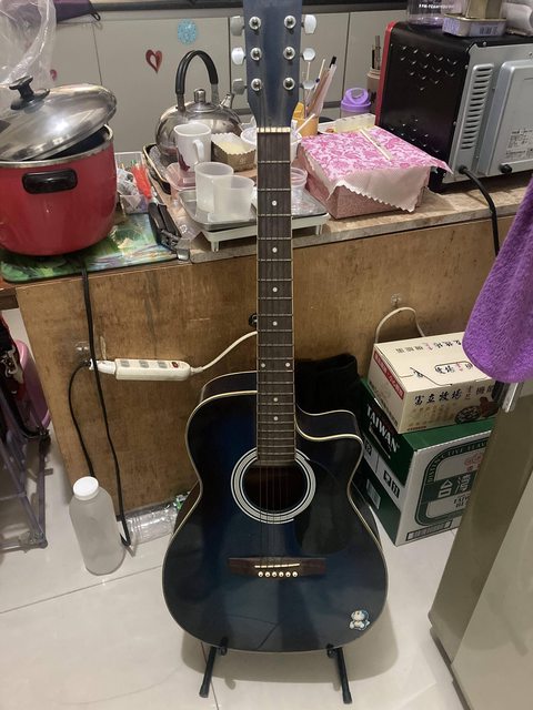 ①吉他,需換弦,放置有點久了可能有點受潮,沒有袋子裝(拉鍊打不開只好丟了)