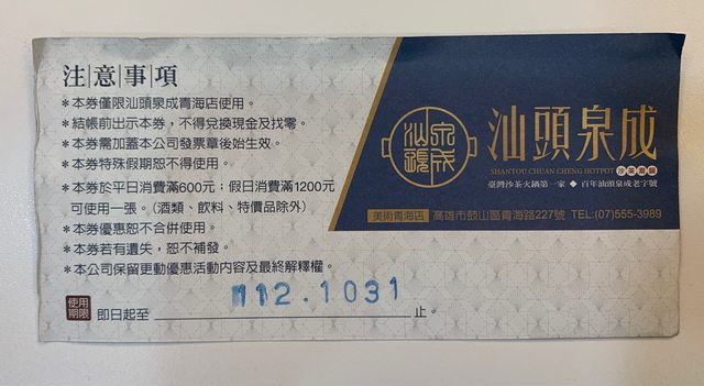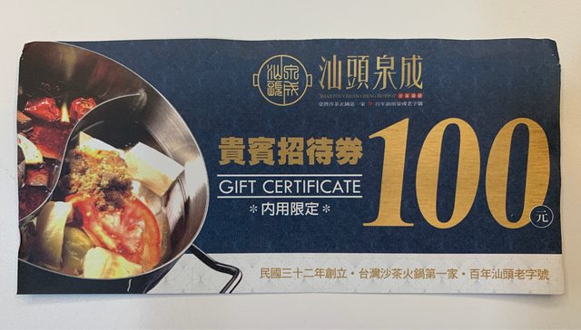 標題[贈送] 汕頭泉成貴賓招待卷100元