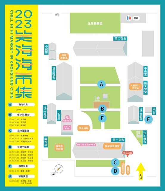 舞台、市集、餐桌、講座、導覽、展覽、旗津人力三輪車