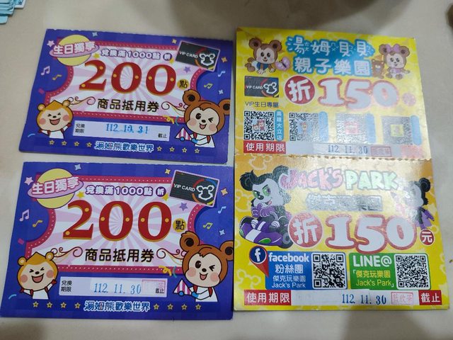 1.一張遊樂園折價卷,可以帶小朋友去玩,不無小補,有效期限11/30