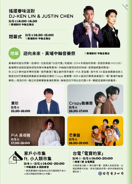 11/05(日) 更邀請黃玠、Crispy脆、PiA吳蓓雅、芒果醬等音樂人,