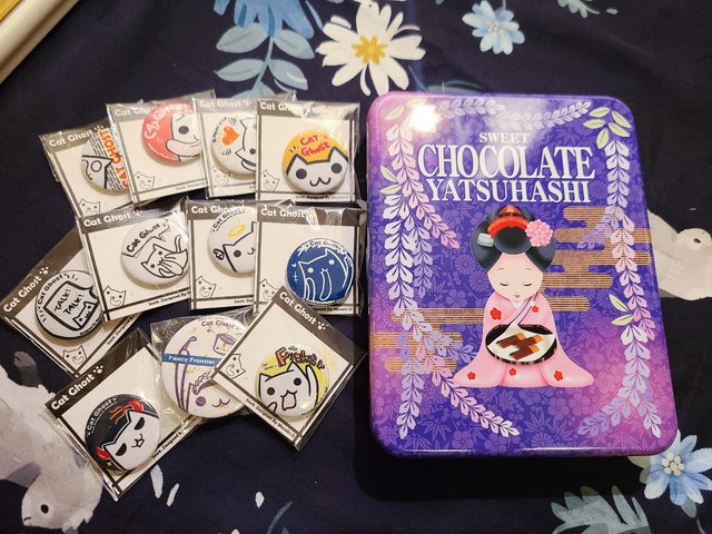 標題[交換] 日本燒菓子鐵盒、貓咪徽章