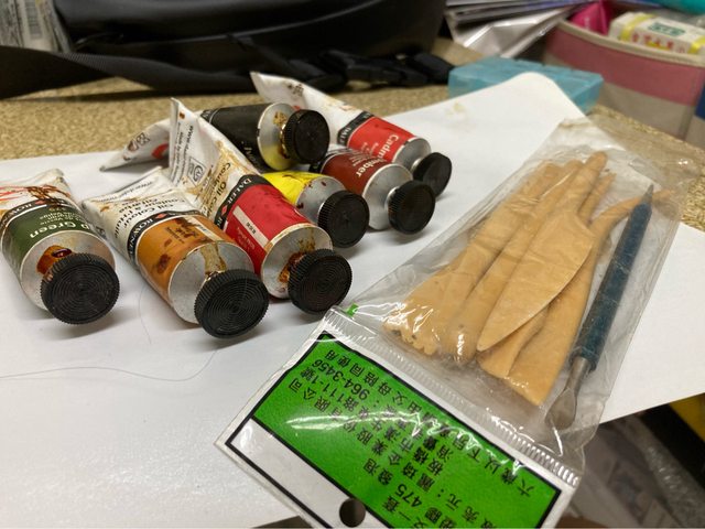 油畫顏料7條(洽)/塑形刀組(做瓷器用得到)