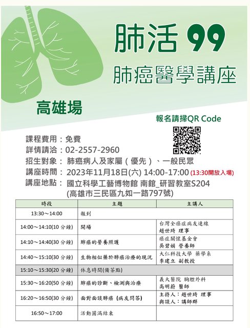 標題[活動] 肺活99肺癌醫學講座 高雄場