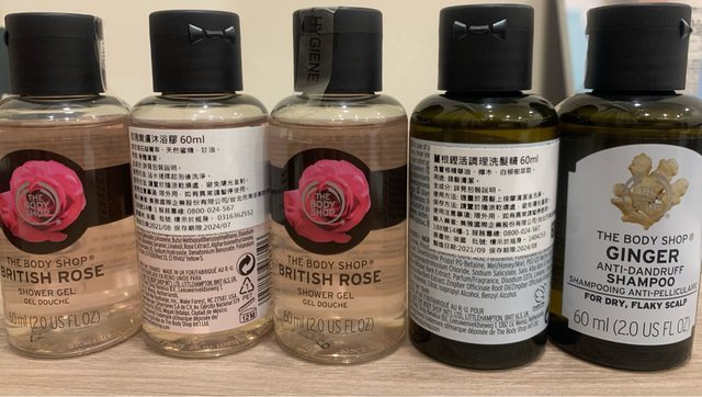 物品名稱:3瓶 60ml (玫瑰嫩膚沐浴膠;保存期限2024/7)+2 瓶 60ml (薑根調理洗髮