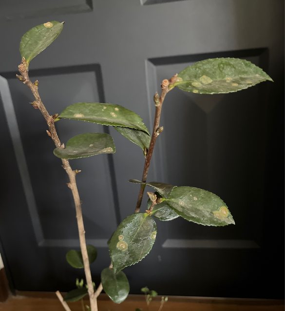 但是剛仔細看發現葉上有圓色的褐色點