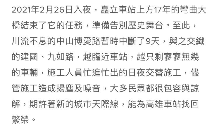 → momotaloson : 衡量所有高雄市民的福祉,所以還是只能夜間施工 12/13 10:40