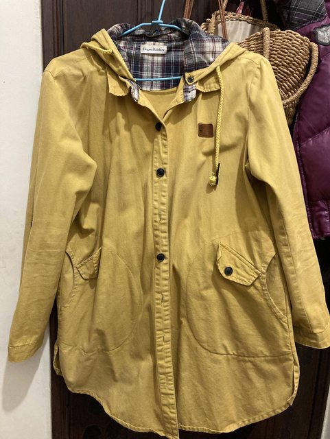 ①無品牌的芥末黃外套,算寬鬆,需要洗一下再穿比較好
