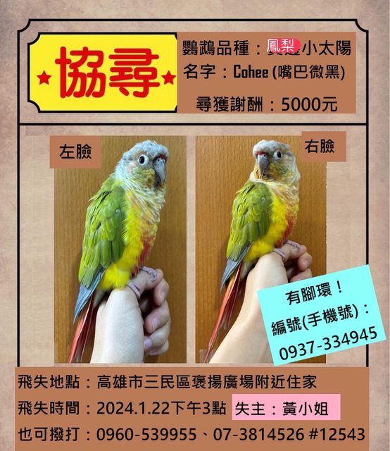 請幫忙協尋小鸚鵡