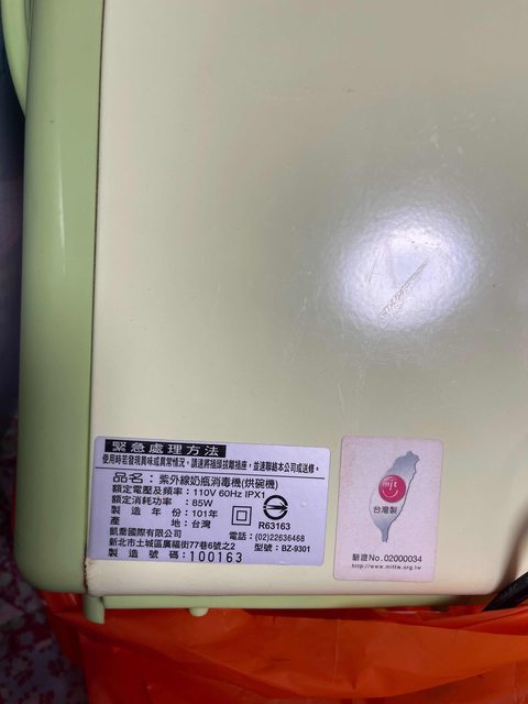 物品名稱:紫外線奶瓶殺菌烘乾機