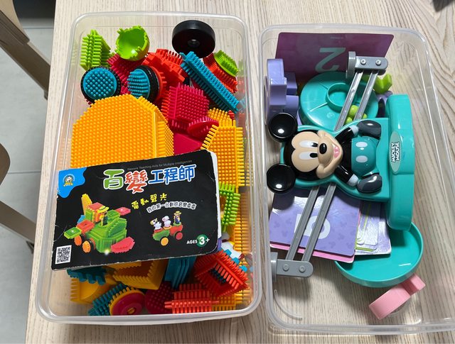 物品名稱:益智積木、算數桌遊、字母聲光公車