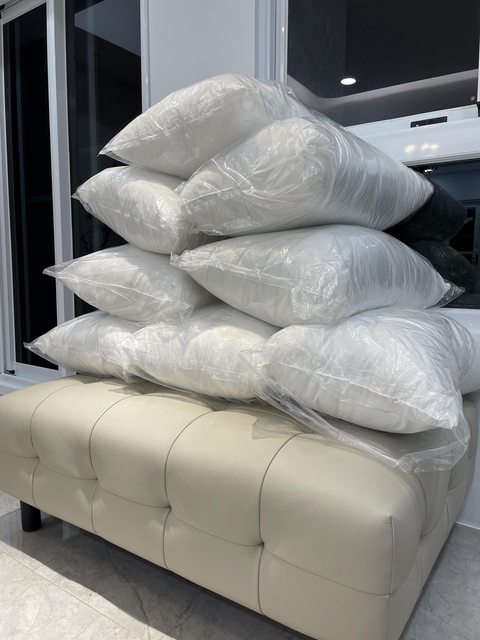 物品名稱:8顆白色枕頭,全新 未使用 (長約65cm寬約40cm)。