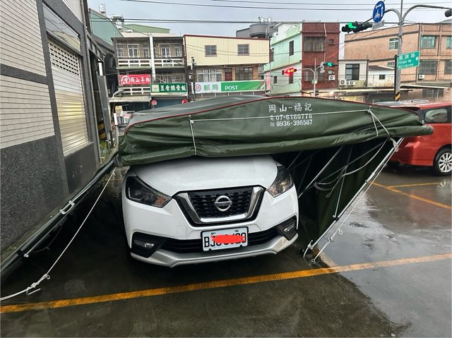 我是這篇文的作者,車已找到人幫忙移走,車棚骨架受損。