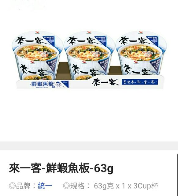 欲換物品:來一客鮮蝦魚板杯麵(3杯1組)