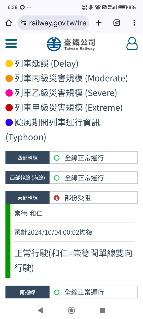 → wintersxp : 但是台鐵網站,公告西部幹線,南迴線,全線正常 10/04 06:49
