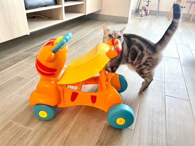 (可坐在上面或是推著走當成學步車,正面有三個按鈕會發出聲音,功能都正常,鼻子有