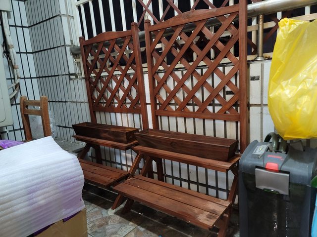 雙層木頭花架及木頭裝飾盆也送你,兩組一起換