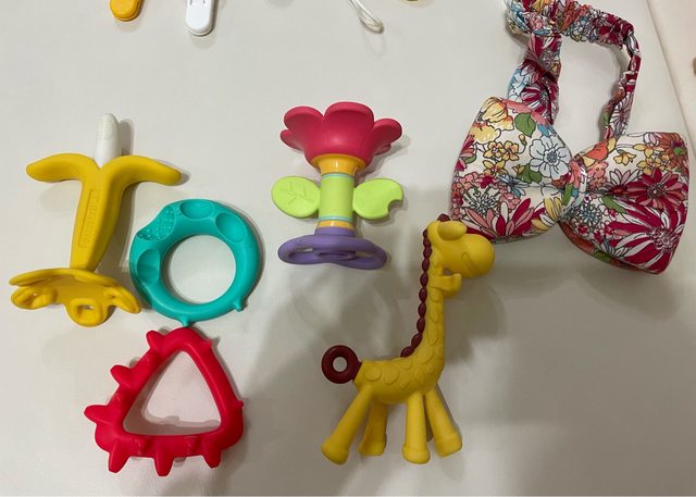 物品名稱:襪子,頭帶,固齒器,玩具,奶粉分裝盒,帽子,奶嘴鍊等