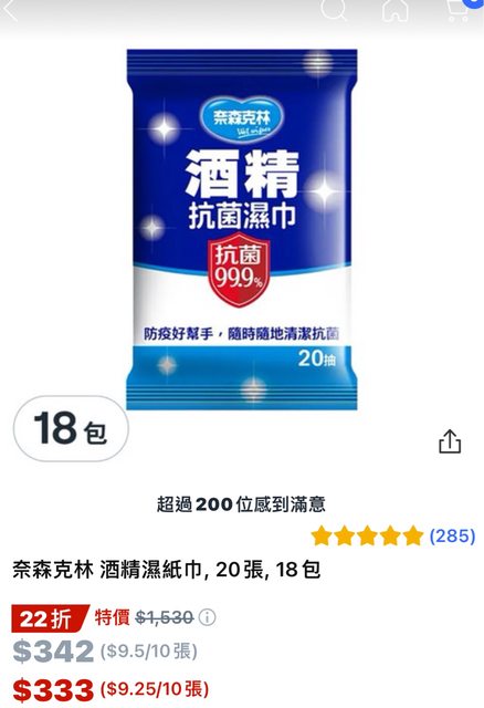 酒精濕紙巾 20抽*18包