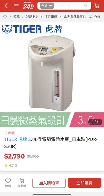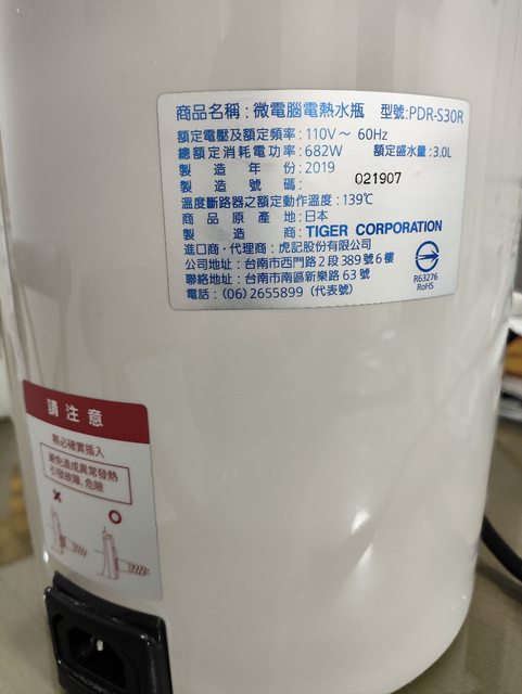 物品名稱:虎牌3公升電熱水瓶日本製(型號PDR-S30R)