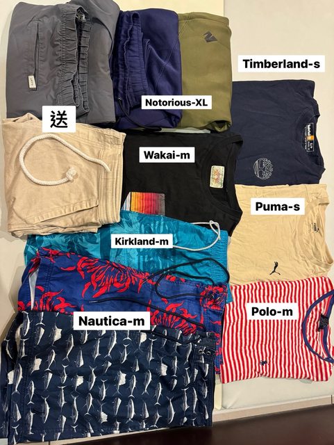皆是先生物況不錯的衣物,希望四件上衣+近新Kirkland海灘褲可換一袋2XL不限品牌及片數
