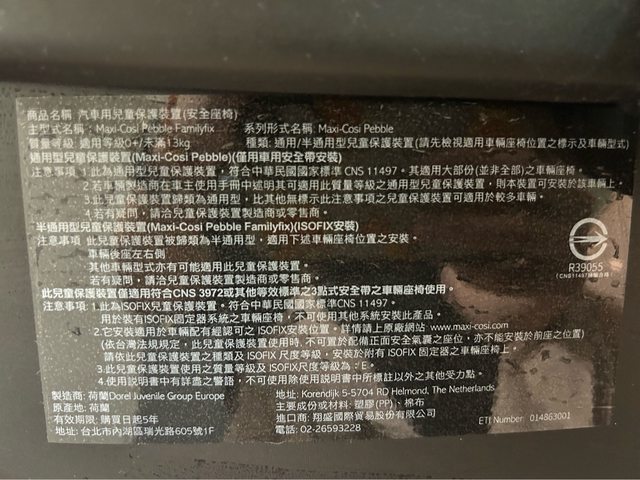 物品名稱:二手MAXI-COSI Pebble提籃