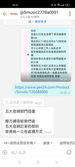 先貼給大家看五大的回覆