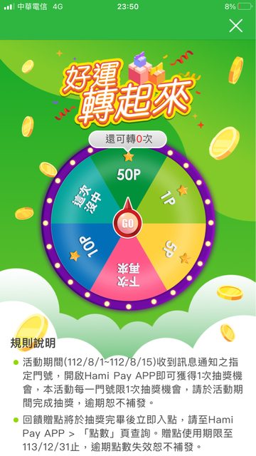 whitemarch: 前幾天也有轉二次 要有用Hami pay 消 111.71.103.252 08/02 07:47
