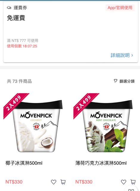 官網優惠!! 限時24hr!冷凍品消費滿$777免運費! ※ 活動時間:8/3(三)12:00~8/4(四)11:59 推薦薄荷巧克力(喜歡薄荷必買!!) 草莓(酸酸甜甜的) 巧克力(好吃但我覺得有一點點太甜) ※ 引述《wpgca (wpgca)》之銘言: : https://reurl.cc/r5V8gZ : 2023/07/20 00:00 ~ 2023/07/31 23:59 : https://i.imgur.com/mg3fFkd.jpg
