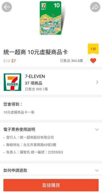 → TZUYIC: 取消了,全部重買10張12元的7-11 $15。 101.136.80.168 08/08 22:40