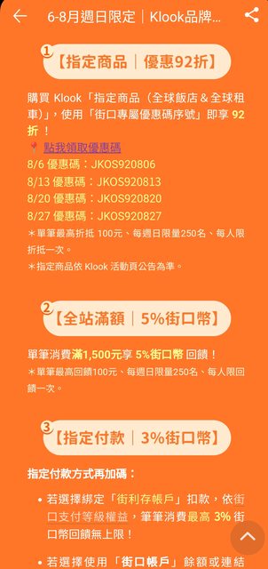 標題[情報] 街口Klook品牌日(週日6-8月)