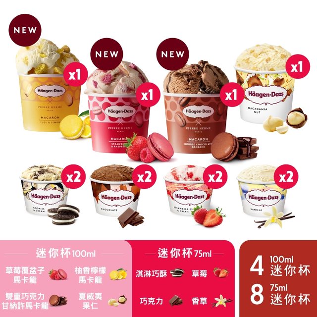 哈根達斯 浪漫夏日迷你杯12入組 (100ML X 4 + 75ML X 8 $749