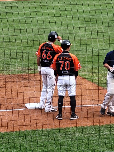 進到球場之後 同行朋友說了個笑話