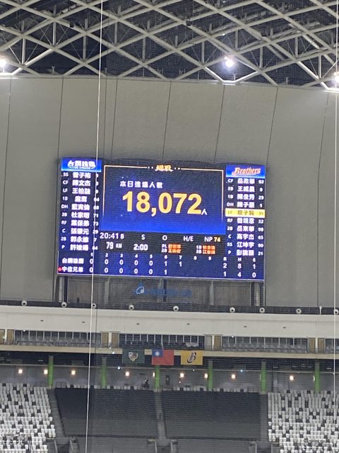 大巨蛋的燈光秀很厲害,可以聚光球員也可以打其他顏色的光