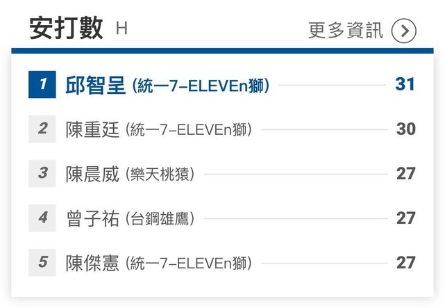 安打第二、打點第三