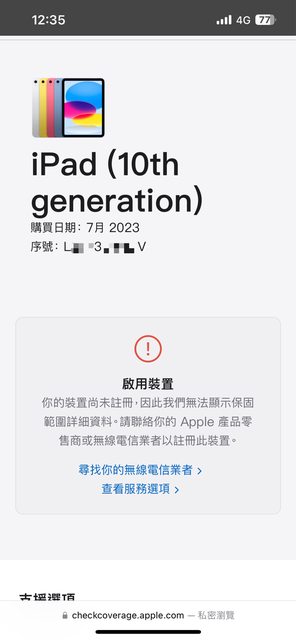可憑商品序號至 Apple官網查詢 https://apple.co/3l6By0R