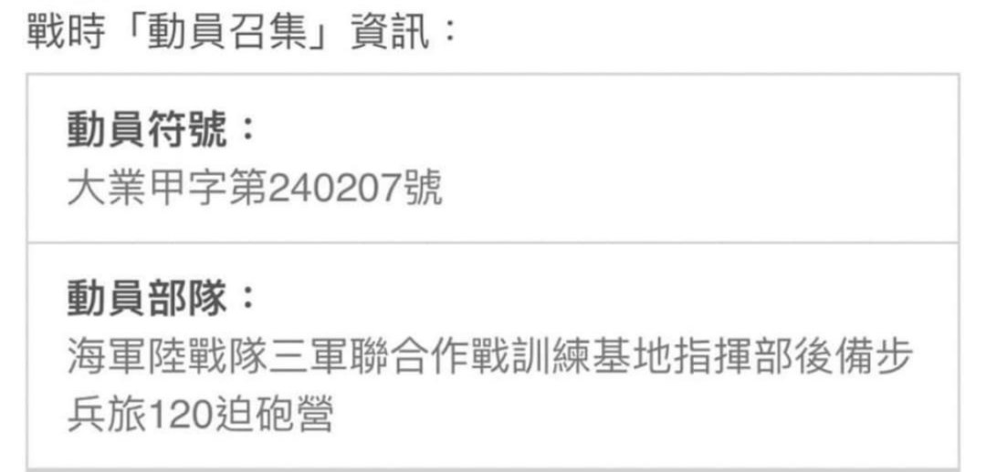 → Gdiaofuta : 動員令也平時教育召集和戰時動員召集,教育召集在2 03/20 21:15