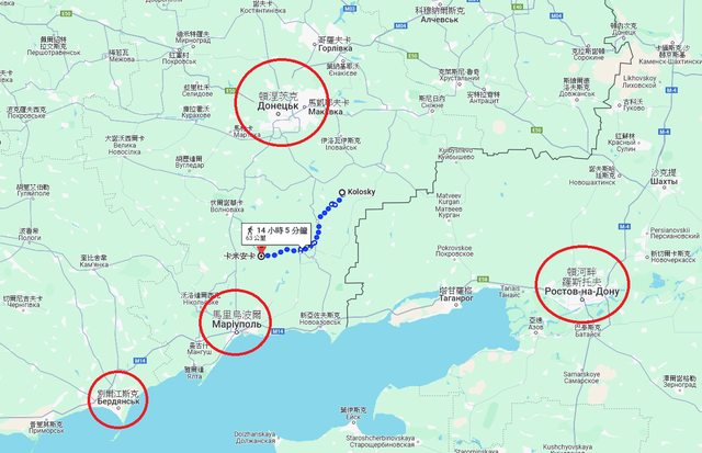 是我用步行路線示意而已。總之俄羅斯要蓋這麼一段把馬里烏波爾、