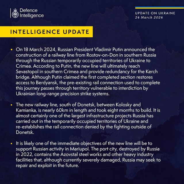 標題[情報] 英國國防部烏克蘭戰報 3/24 俄築新鐵路