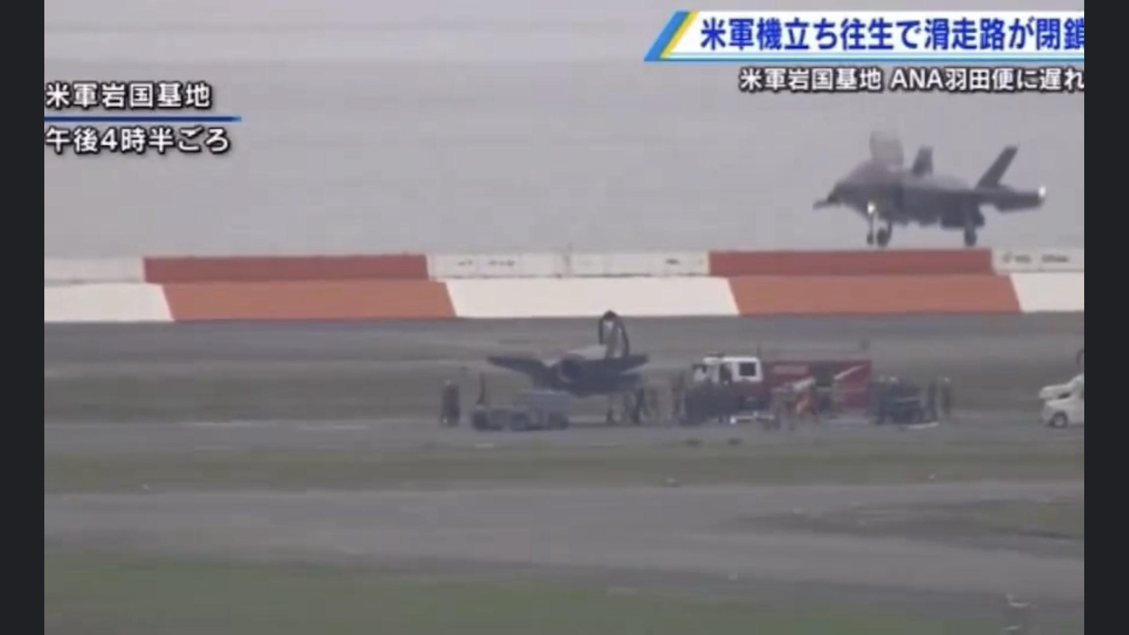 根據岩國基地說明,F-35A著陸之際,輪胎出現故障並停在