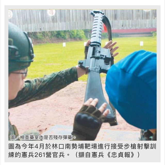 憲兵《忠貞報》報導指出,本次接受射擊訓練的憲兵202指揮部第261營,上(4)月中旬於