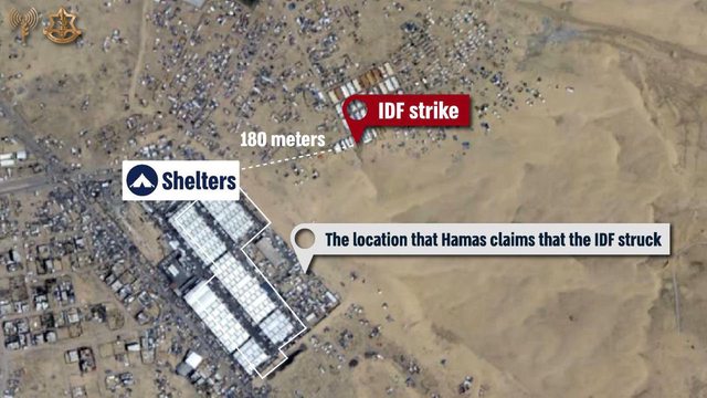 該地點距離al-Mawasi人道區 1.7 公里 (Hamas宣稱在人道區)