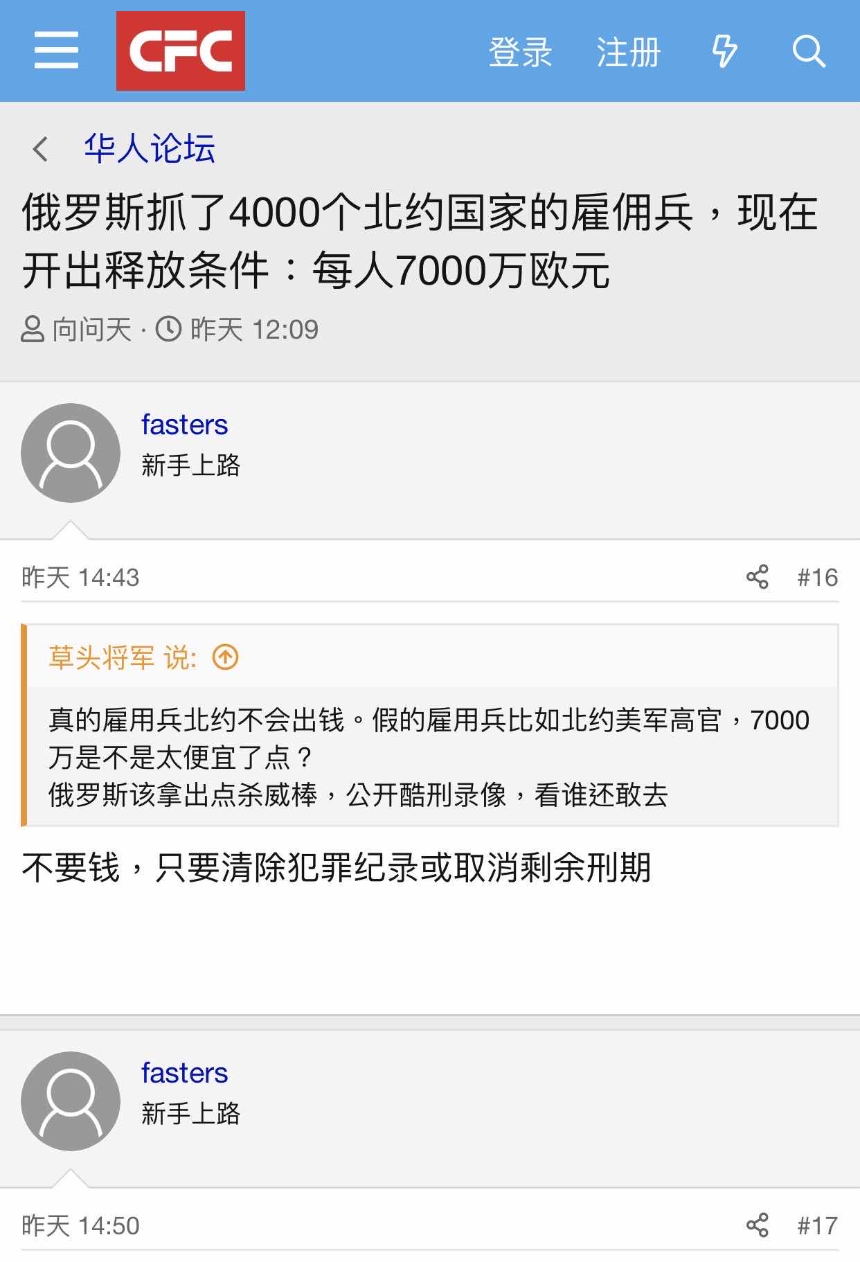 → VANNN : 我只問你 "北約雇傭兵" 7千萬的新聞來源是那?? 06/07 12:39