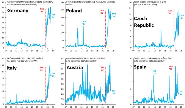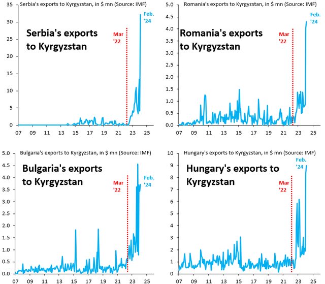 歐盟國家對吉爾吉斯斯坦的出口荒謬地激增